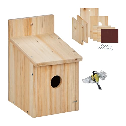 Relaxdays Nichoir d’extérieur pour Oiseaux, diamètre Trou d’envol : 35 mm, à Assembler soi-même, HLP 23x14x18 cm, Nature