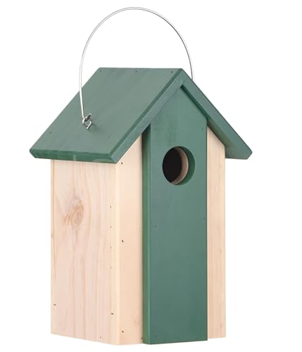 dobar VOBU Nichoir à Toit Pointu pour Troglodyte - Demi-nichoir en Bois pour Oiseaux Sauvages - Vert