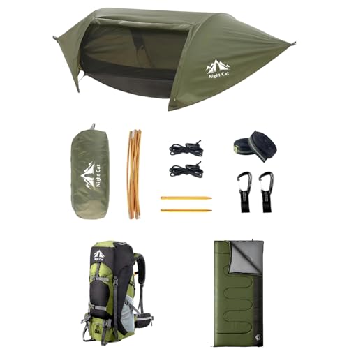 Night Cat Hamac Tente avec Moustiquaire Sac à Dos de Randonnée Trekking Imperméable à l'eau pour 1 Personne Randonnée Camping dans Jardin Arrière-Cour Sauvage Vert