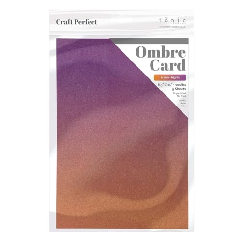 Tonic Studios Craft Perfect Papier Cartonné Pailleté A4-5 Feuilles Couleur Arabian Nights - Ombre Glitter Card de 270 g/m² - pour Loisirs Créatifs & Scrapbooking