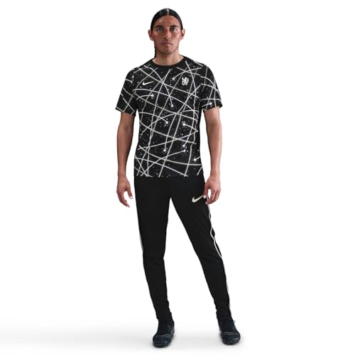 FC Chelsea Academy Pro, Dri-Fit, pré-Match, Haut de Football à Manches Courtes, pour Homme, Noir/Lait de Noix de Coco/Team Gold/Coconut Milk, IF3967-010, XL