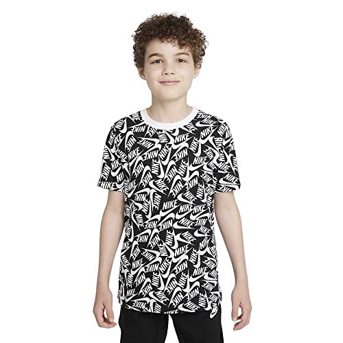 Nike Garçon B Nsw Tee Futura Aop T Shirt, Black/White, 13 ans EU