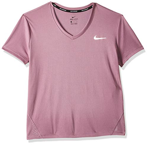 Nike W NK Miler Top Vneck T-Shirt Femme Plum Dust/Reflective Silv FR : M (Taille Fabricant : M)