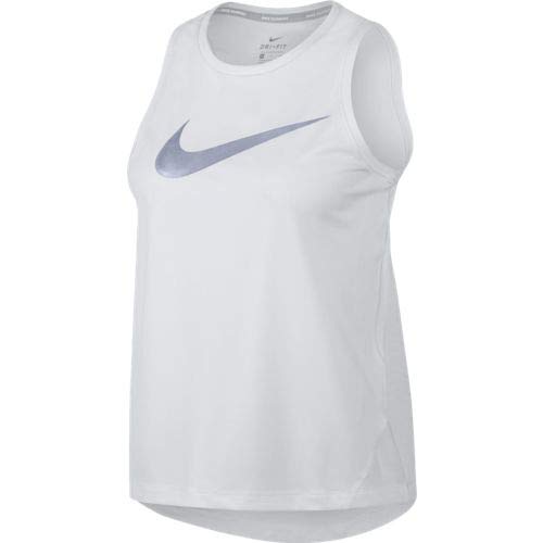 Nike W NK Miler Tank HBR1 Réservoir Femme, White/Reflective Silv, FR : S (Taille Fabricant : S)