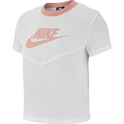 Nike NSW Heritage Sleeve Shirt Mesh Femme T-Shirt Femme White/White/Pink Quartz FR : S (Taille Fabricant : S)
