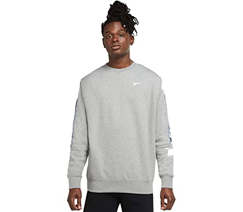 Nike NSW Repeat FLC Crew BB Sweatshirt Hommes, DK Grey Heather/White, FR : 2XL (Taille Fabricant : XXL)