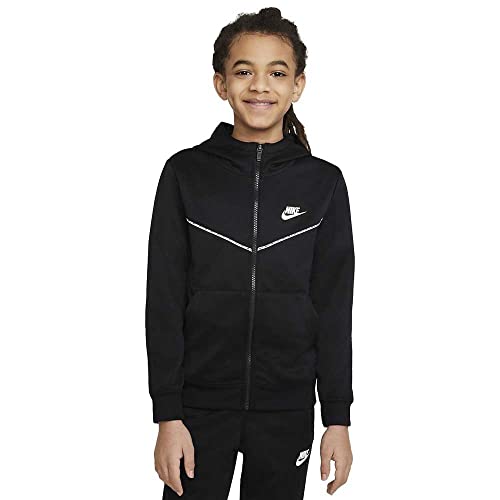 Nike B NSW Repeat FZ Poly Hood Sweat-Shirt Garçon, Black/White, FR (Taille Fabricant : XL)