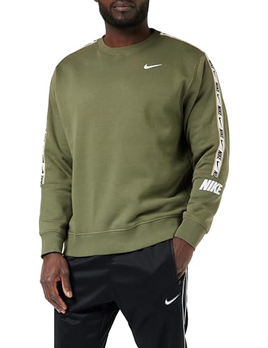 Nike Repeat Fleece Crew BB Sweatshirt Maillot de survêtement Homme, Vert Olive/Blanc, m