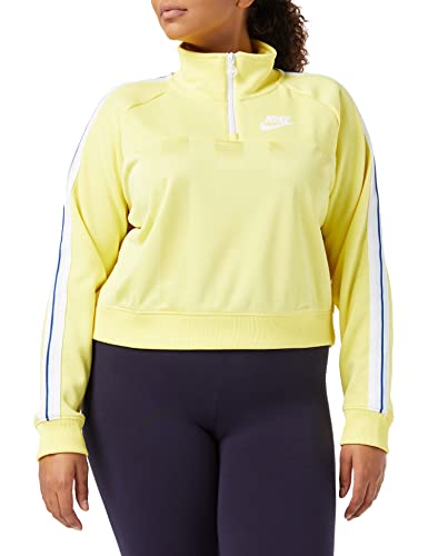Nike W NSW Top LS HZ SHDW STRP T-Shirt à Manches Longues Femme, Yellow Pulse/Summit White/Whit, FR : M (Taille Fabricant : M)