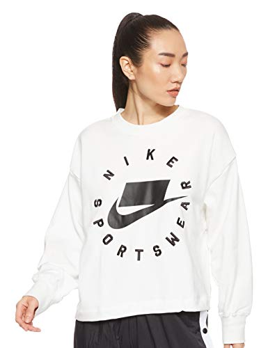 Nike W NSW Crew FLC FT BF T-Shirt à Manches Longues Femme, Summit White/Black, FR : M (Taille Fabricant : M)