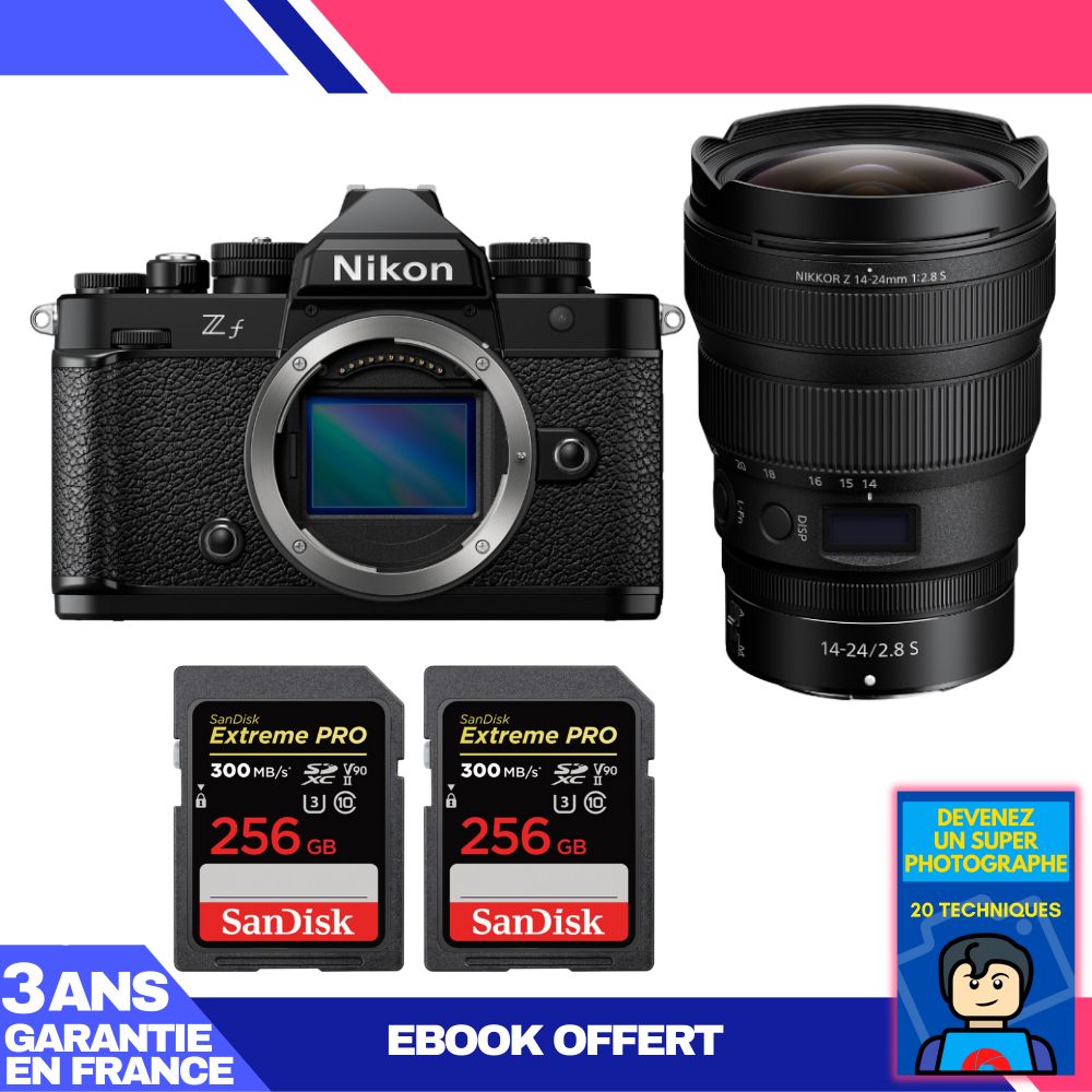 Boitier Nikon Zf + 14-24mm f/2.8 S + 2 SanDisk 256GB Extreme PRO UHS-II SDXC 300 MB/s + Ebook 'Devenez Un Super Photographe