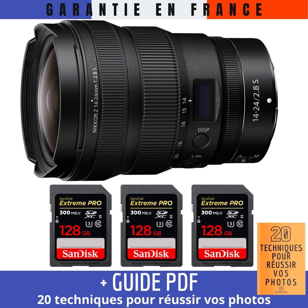Nikon Z 14-24mm f/2.8 S + 3 SanDisk 128GB UHS-II 300 MB/s + Guide PDF 20 techniques pour réussir vos photos