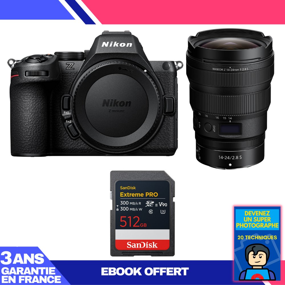 Boitier Nikon Z5 II + 14-24mm f/2.8 S + 1 SanDisk 512GB Extreme PRO UHS-II SDXC + Ebook 'Devenez Un Super Photographe