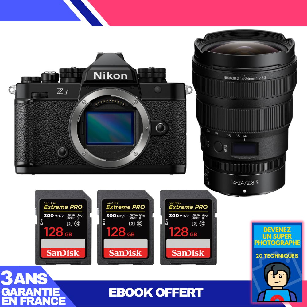 Boitier Nikon Zf + 14-24mm f/2.8 S + 3 SanDisk 128GB Extreme PRO UHS-II SDXC 300 MB/s + Ebook 'Devenez Un Super Photographe
