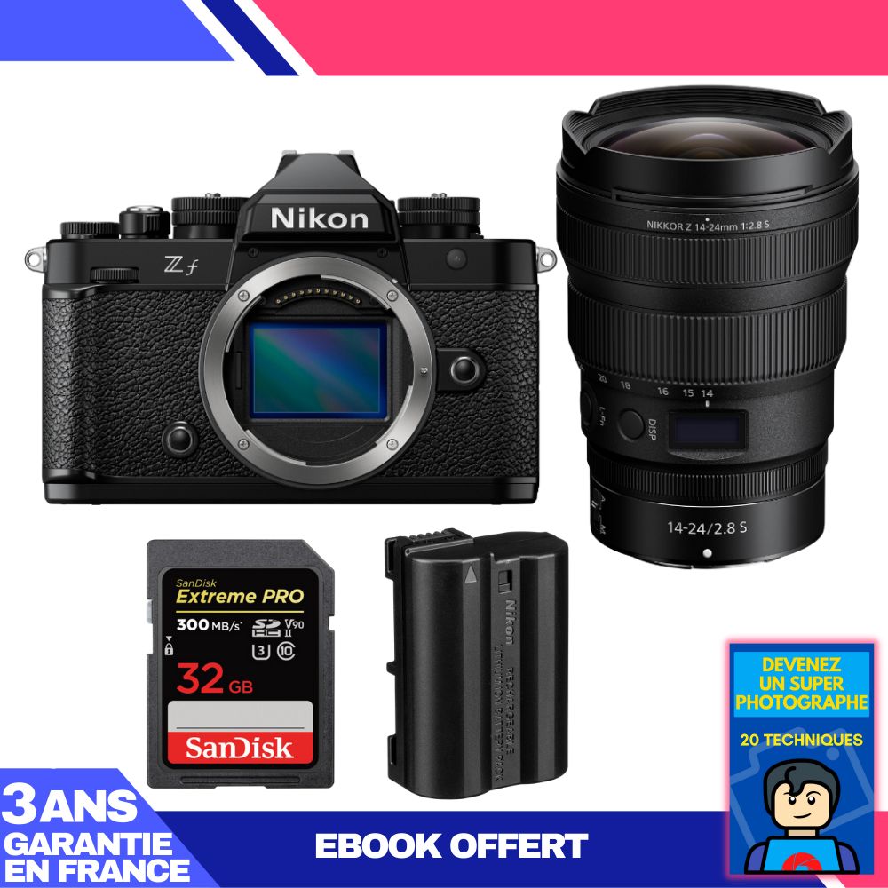 Boitier Nikon Zf + 14-24mm f/2.8 S + 1 SanDisk 32GB Extreme PRO UHS-II SDXC 300 MB/s + 1 Nikon EN-EL15C + Ebook 'Devenez Un Super Photographe