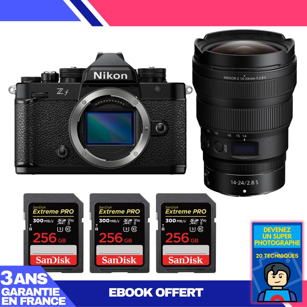 Boitier Nikon Zf + 14-24mm f/2.8 S + 3 SanDisk 256GB Extreme PRO UHS-II SDXC 300 MB/s + Ebook 'Devenez Un Super Photographe