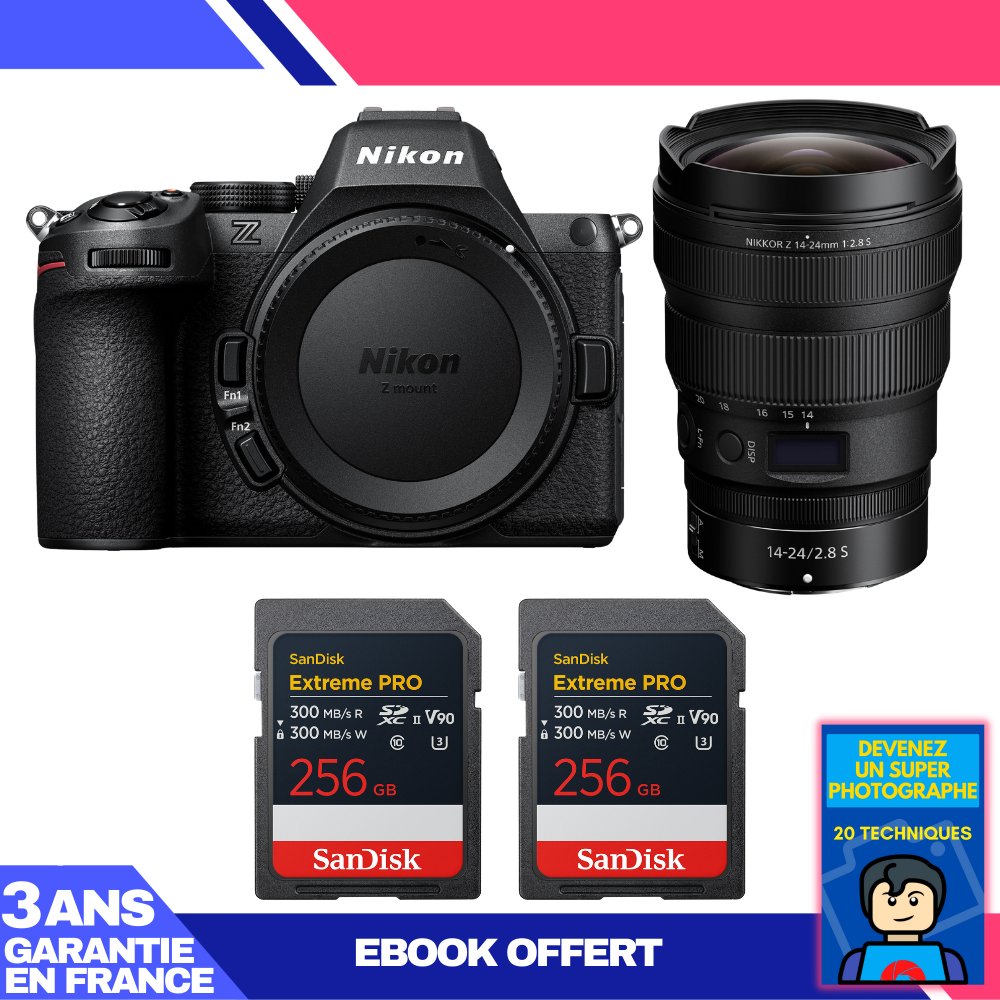 Boitier Nikon Z5 II + 14-24mm f/2.8 S + 3 SanDisk 256GB Extreme PRO UHS-II SDXC + Ebook 'Devenez Un Super Photographe