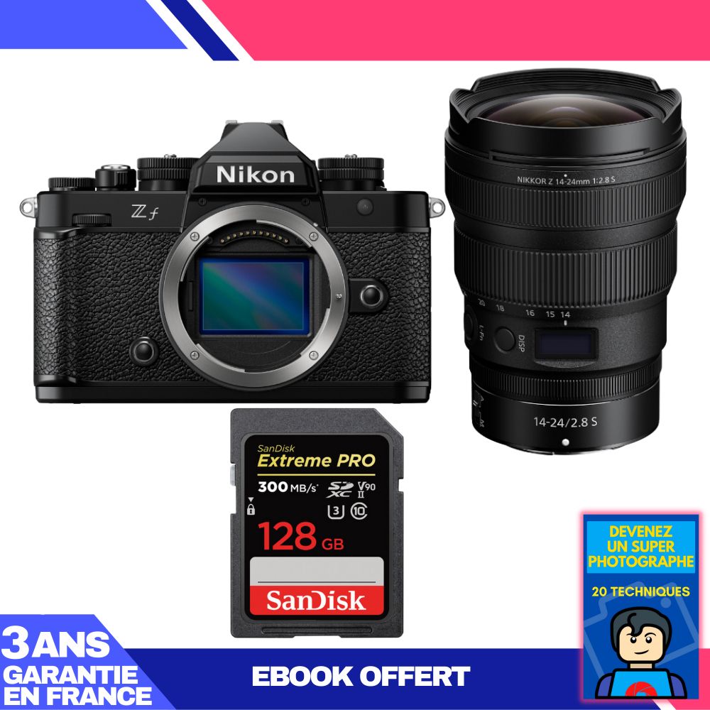 Boitier Nikon Zf + 14-24mm f/2.8 S + 1 SanDisk 128GB Extreme PRO UHS-II SDXC 300 MB/s + Ebook 'Devenez Un Super Photographe