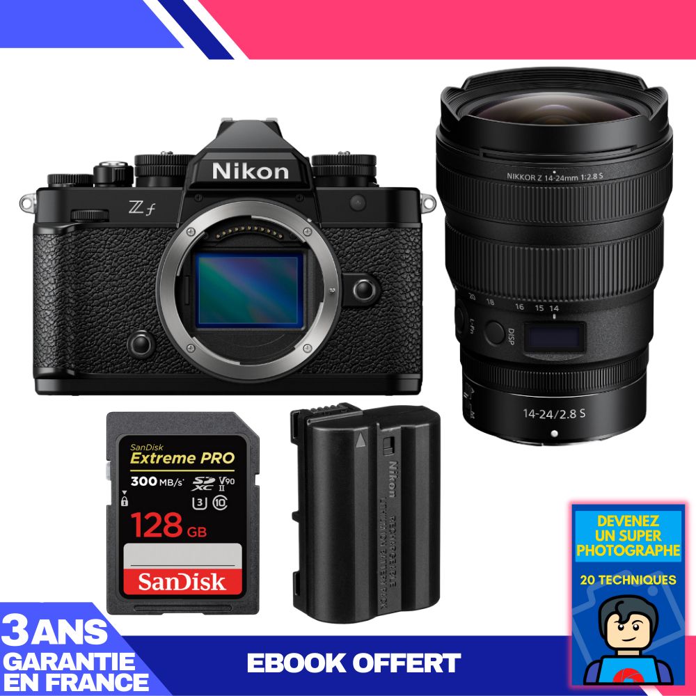 Boitier Nikon Zf + 14-24mm f/2.8 S + 1 SanDisk 128GB Extreme PRO UHS-II SDXC 300 MB/s + 1 Nikon EN-EL15C + Ebook 'Devenez Un Super Photographe