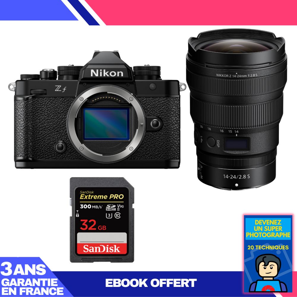 Boitier Nikon Zf + 14-24mm f/2.8 S + 2 SanDisk 32GB Extreme PRO UHS-II SDXC 300 MB/s + Ebook 'Devenez Un Super Photographe