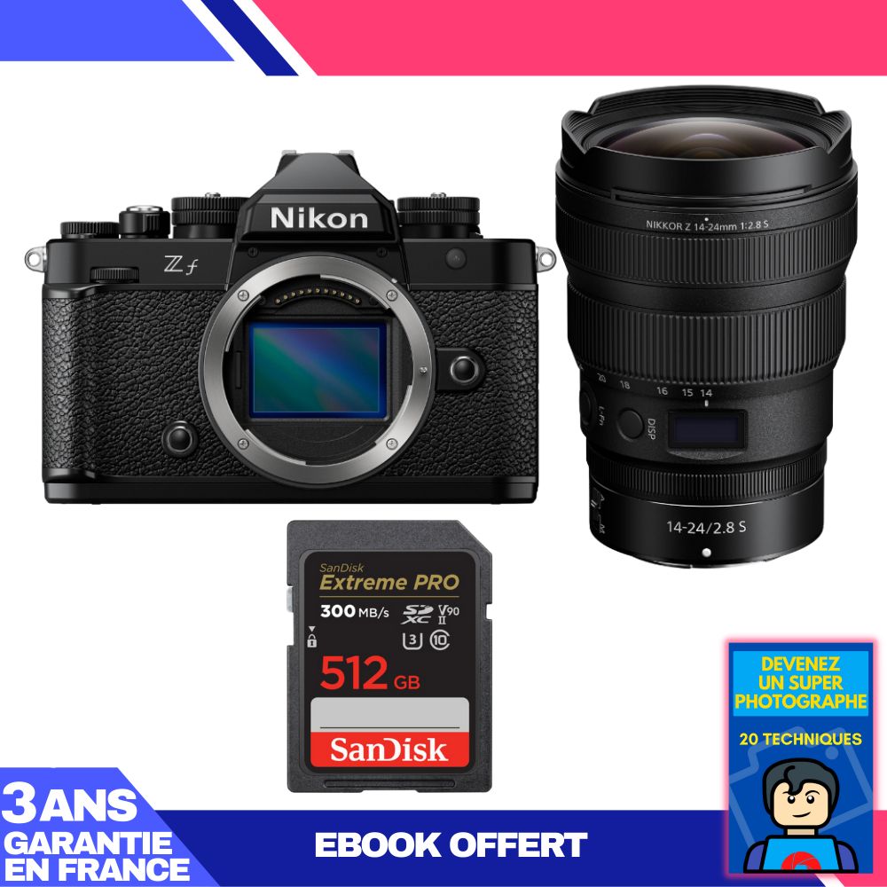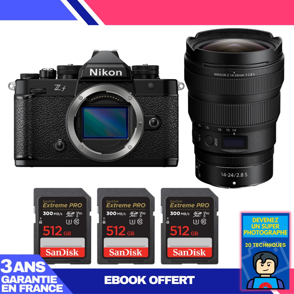 Boitier Nikon Zf + 14-24mm f/2.8 S + 3 SanDisk 512GB Extreme PRO UHS-II SDXC 300 MB/s + Ebook 'Devenez Un Super Photographe