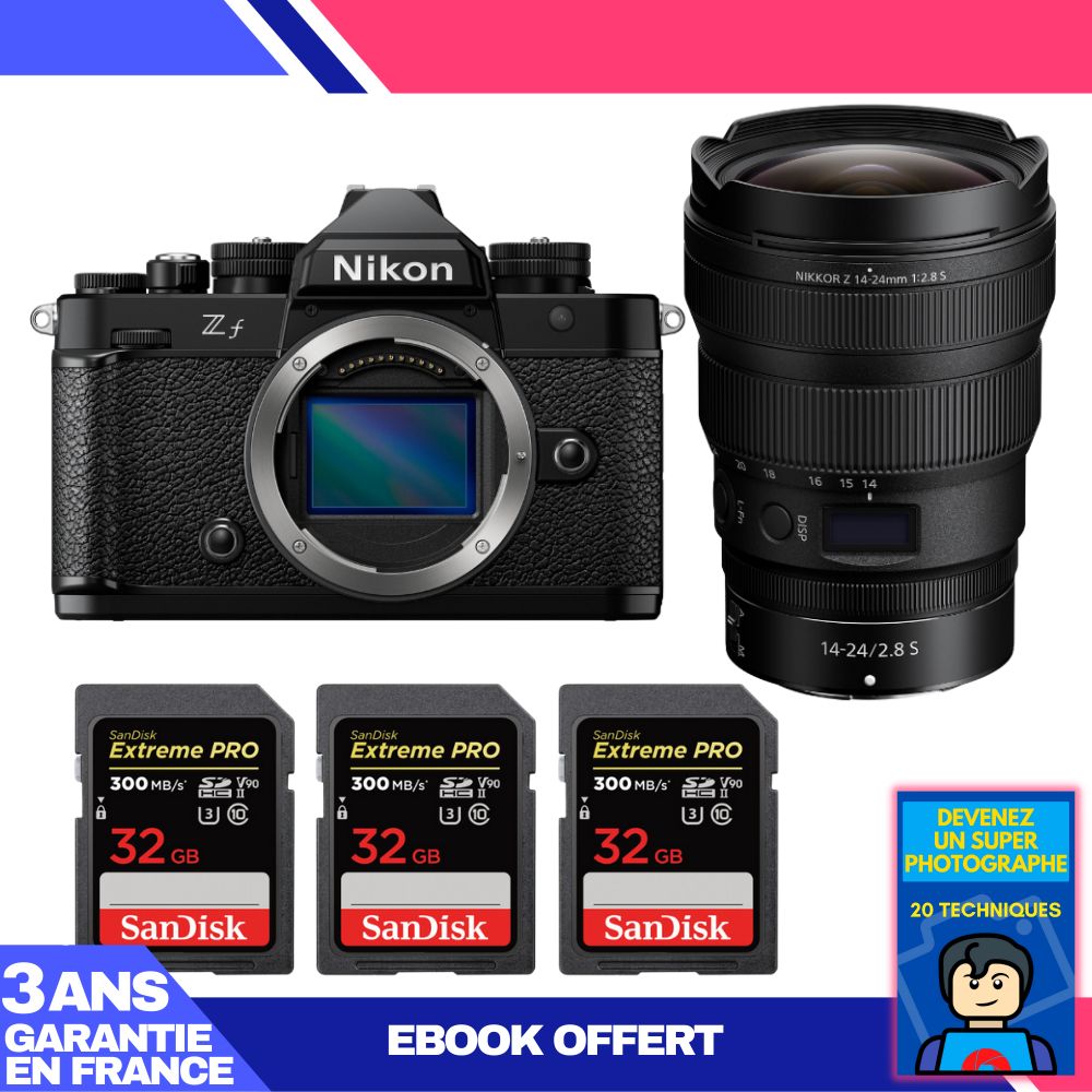 Boitier Nikon Zf + 14-24mm f/2.8 S + 3 SanDisk 32GB Extreme PRO UHS-II SDXC 300 MB/s + Ebook 'Devenez Un Super Photographe