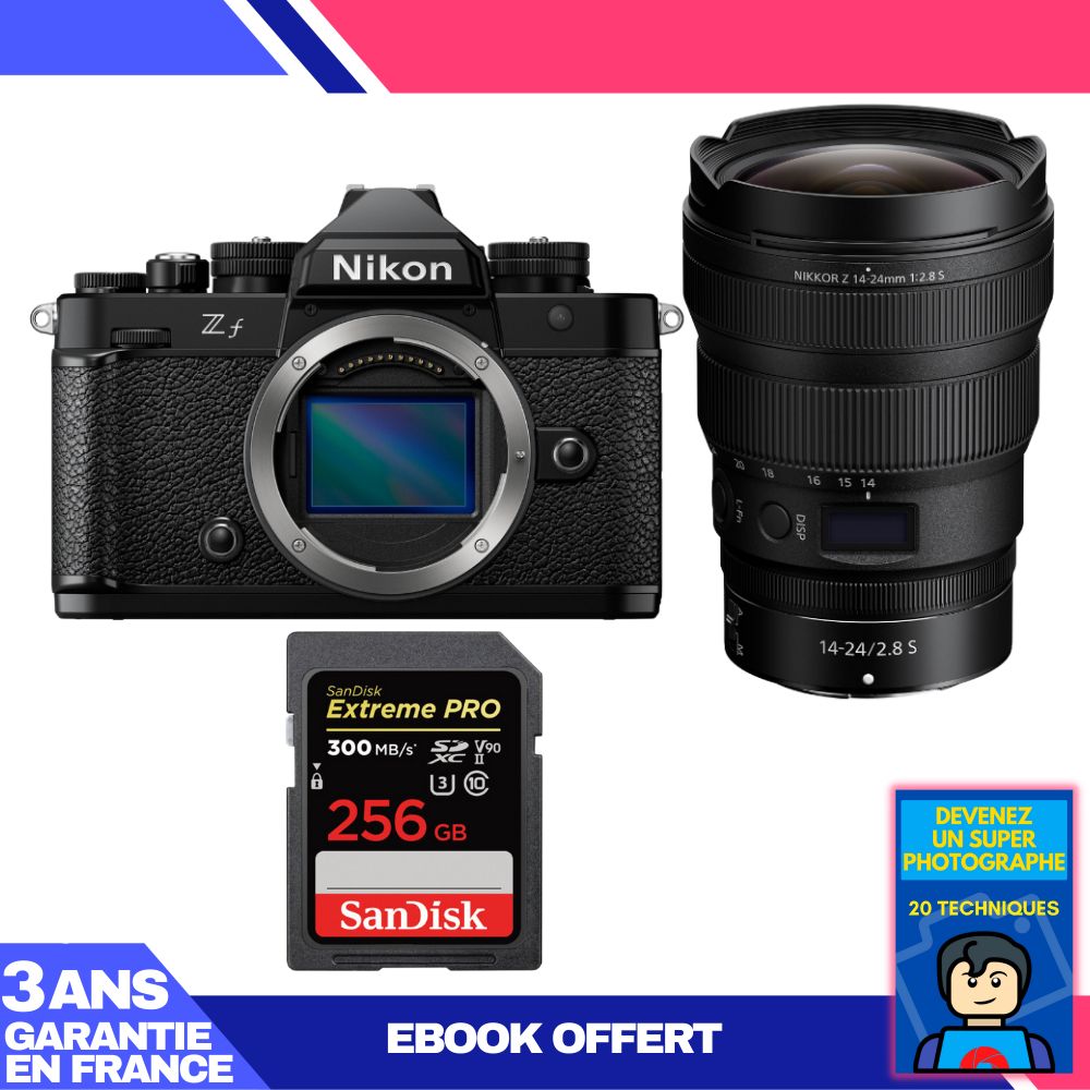 Boitier Nikon Zf + 14-24mm f/2.8 S + 1 SanDisk 256GB Extreme PRO UHS-II SDXC 300 MB/s + Ebook 'Devenez Un Super Photographe