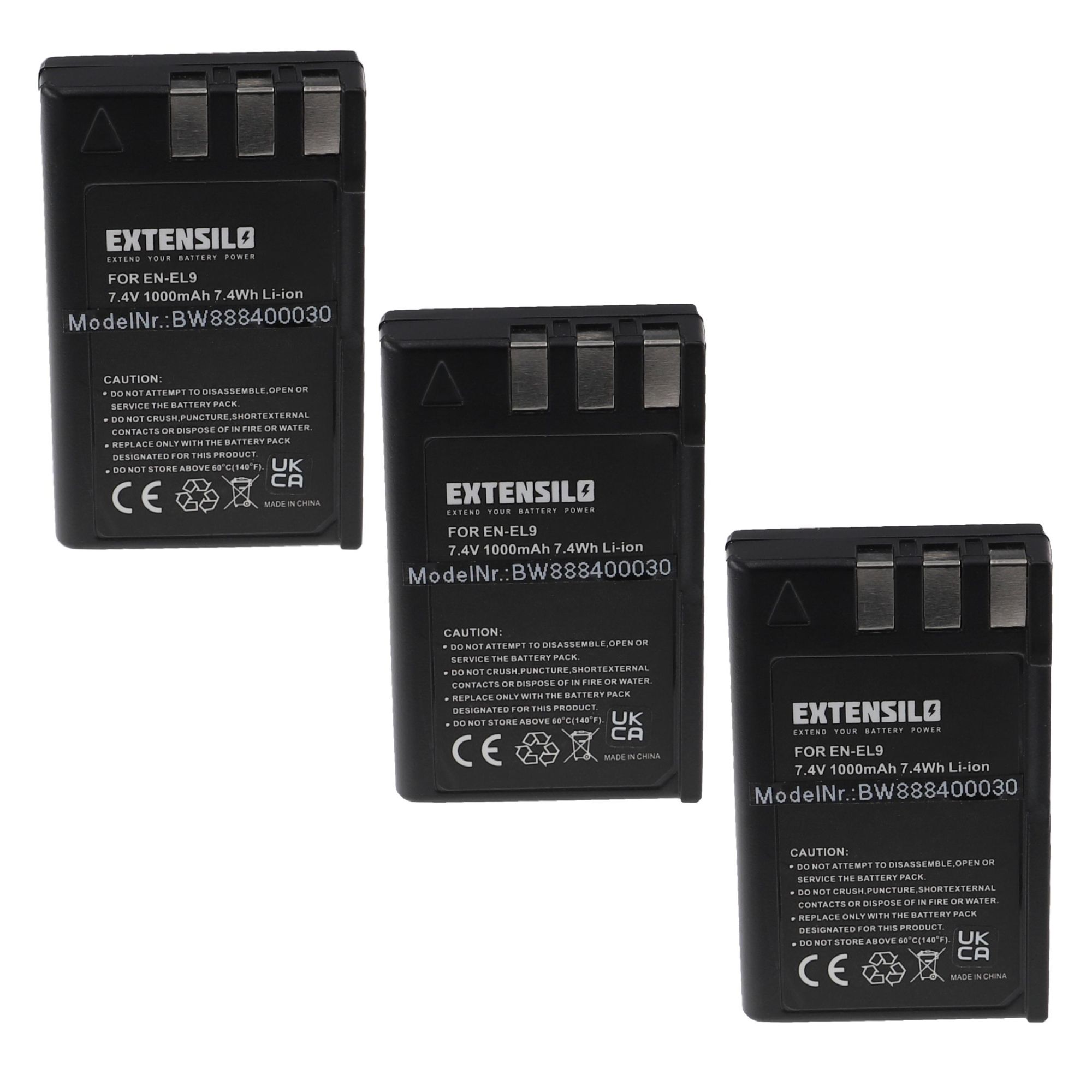 EXTENSILO 3x Batteries compatible avec Nikon D40x DSLR, D40 SLR, D3000, D60 DSLR, D5000 appareil photo (1000mAh, 7,4V, Li-ion)