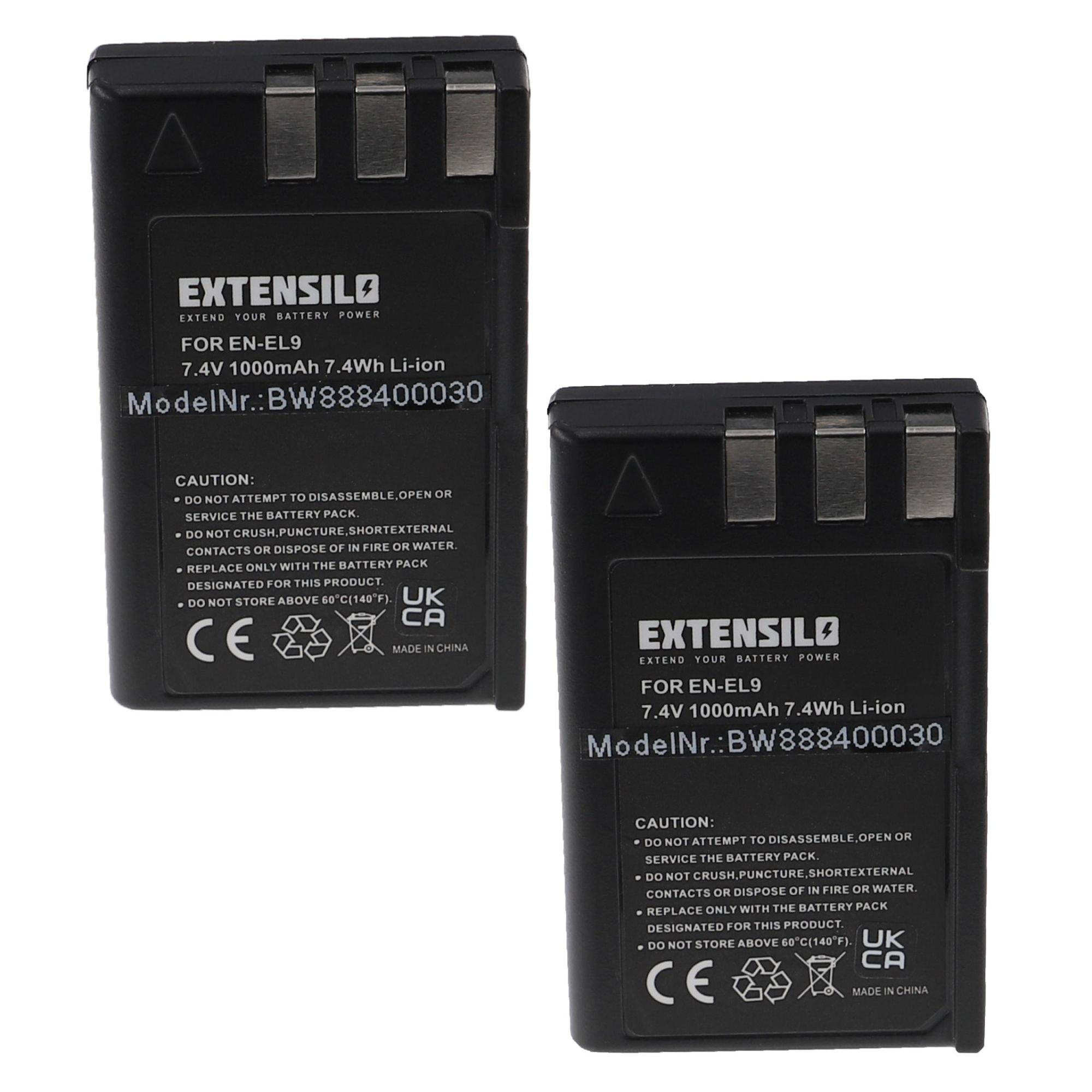 EXTENSILO 2x Batteries compatible avec Nikon D40x DSLR, D40 SLR, D3000, D60 DSLR, D5000 appareil photo (1000mAh, 7,4V, Li-ion)