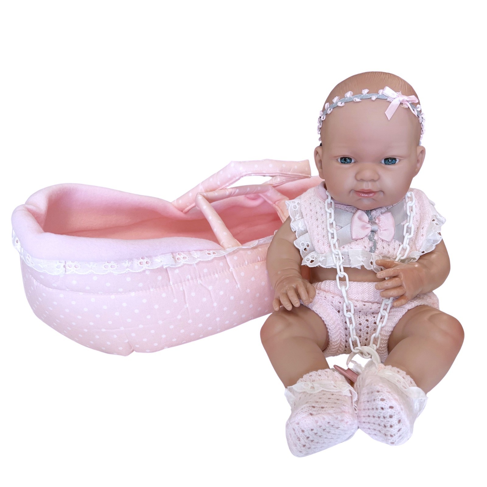 NINES Poupée 37CM Mon Bébé Dans Un Berceau Rose Tout Le Corps En Vinyle