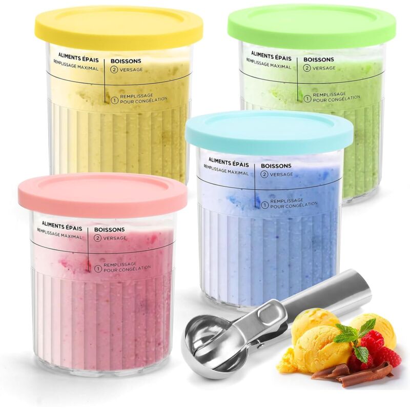 800ML Pot pour ninja Creamy Deluxe 4 Pièces Récipient pour Ninja Creami NC500 et NC501EU Series pour Accessoires Ninja Machine à Glace avec