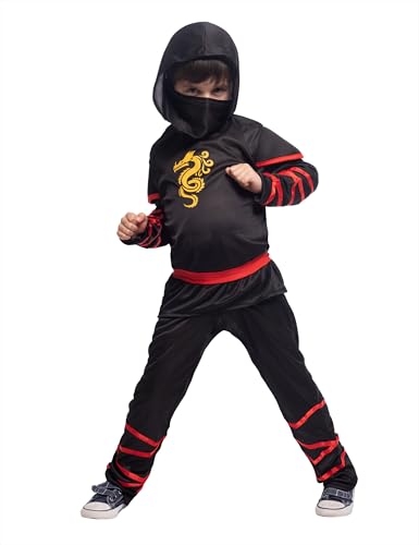 Dress Up America Costume Ninja pour Enfants - Deguisement Ninja Enfant Samurai Warrior Dress Up - Costume Ninja Rouge et Noir pour garçons et Filles