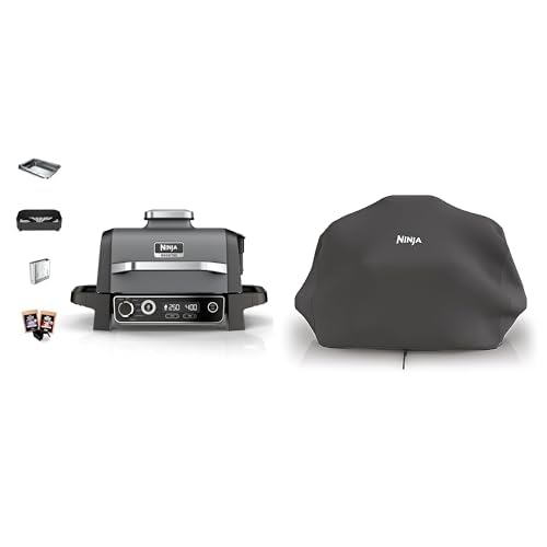 Ninja Woodfire Barbecue Électrique & Air Fryer 7 en 1 - Grill Extérieur avec Housse Noire (OG701/751) - Accessoire Officiel