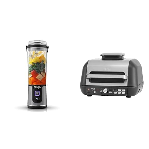 Ninja Blast Blender portable, 530 ml, mini blender sans fil puissant, rechargeable, BC151EUBK + Ninja Foodi MAX Health Grill & Air Fryer, 6-en-1, 3,8L, Exclusivité Amazon AG551EUCP