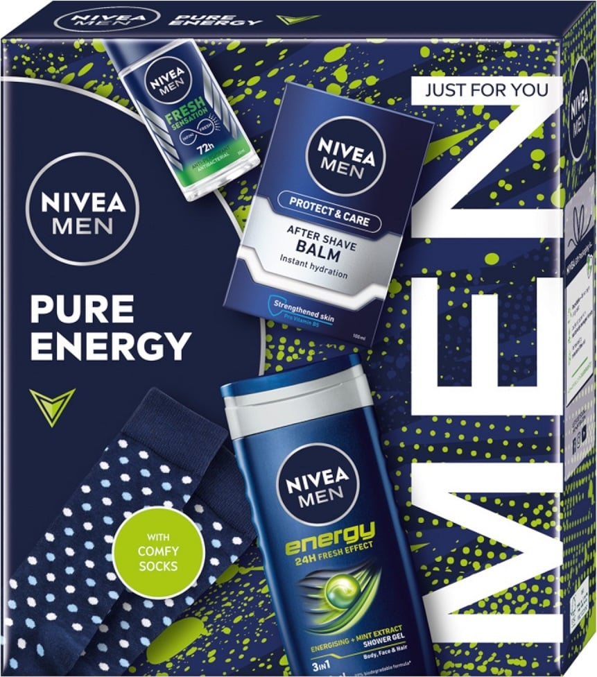 Nivea Set Pure Energy Antiperspirant Roll-On 50ml, Gel douche 250ml, Baume après-rasage 100ml, Chaussettes