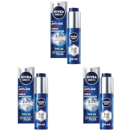 NIVEA MEN Crème hydratante Power 2-en-1 LUMINOUS630® anti-âge & anti-taches (1 x 50 ml), Crème visage pour homme enrichie en acide hyaluronique, Soin de jour SPF 30 pour toutes les peaux (Lot de 3)