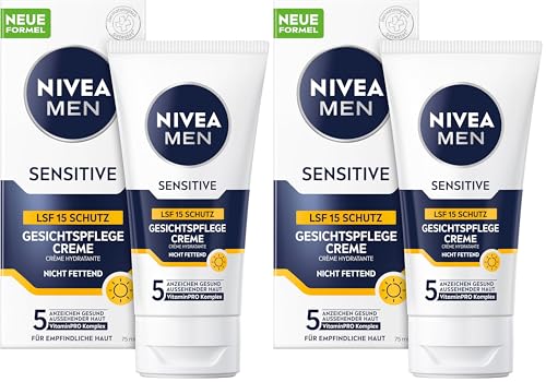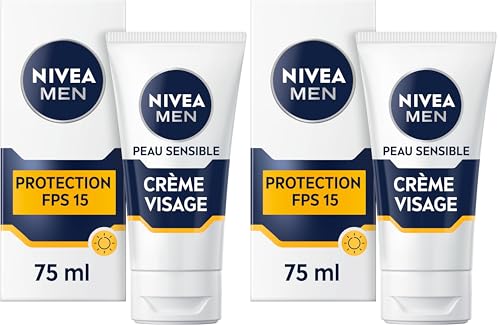 NIVEA MEN Crème Visage FPS 15 pour peaux sensibles (1 x 75 ml), soin visage hydratant homme 0% alcool, crème pour homme à la peau sensible et irritée, crème solaire visage pour homme (Lot de 2)