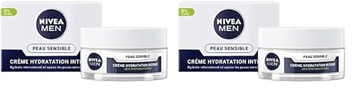 NIVEA MEN Crème hydratation intense Peau Sensible (1 x 50 ml), crème hydratante pour les hommes à la peau sensible et irritée, soin visage homme 0% alcool (Lot de 2)