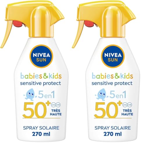 NIVEA SUN Pistolet solaire protection Babies & Kids Sensitive Protect FPS 50+ (1 x 270 ml), Spray ultra résistant à l’eau, Crème solaire formulée pour la peau fragile des enfants et bébés (Lot de 2)