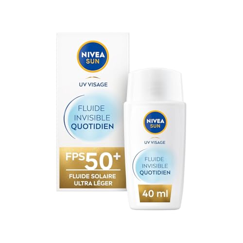 NIVEA SUN Fluide Solaire UV Visage Daily Invisible SPF 50+ (1 x 40 ml) — Crème solaire visage texture ultra-légère — Fluide protecteur matifiant — Tous types de peaux