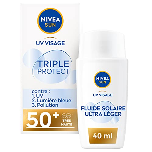 NIVEA SUN Soin Solaire Visage Triple Protect 50+ (1 x 40 ML), Fluide Visage à la Texture Ultra-légère, Fluide Protecteur Quotidien Contenant de l’Acide Hyaluronique