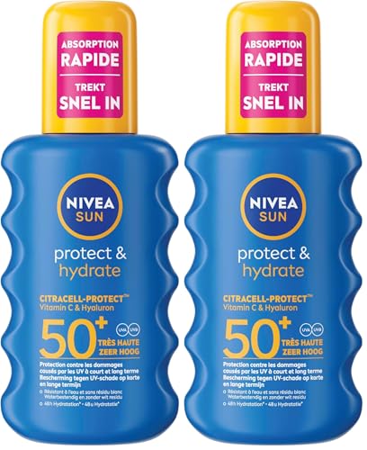 NIVEA SUN Spray Solaire Protect & Hydrate SPF 50+ 200 ml — Crème Solaire résistante à l'eau — Protège et Hydrate — Haute Protection Visage et Corps (Lot de 2)