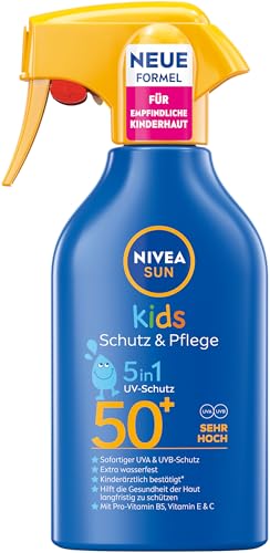 NIVEA SUN Spray solaire pour enfants SPF 50+, haute protection solaire avec panthénol, vitamine C et E, spray crème solaire extra imperméable pour peaux sensibles (250 ml)