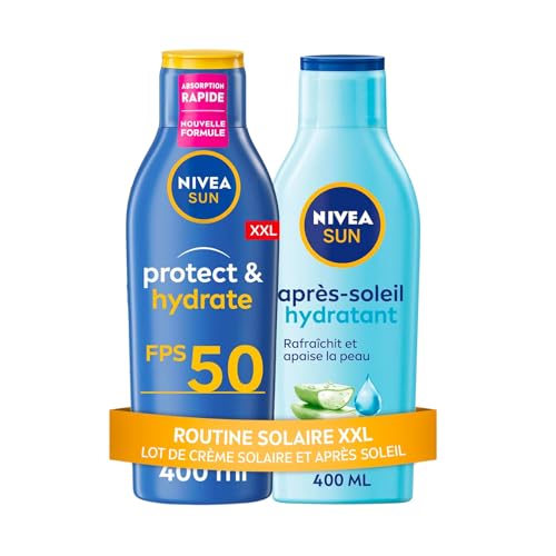 NIVEA SUN - Lot Protection Solaire - Lait SolaireProtect & Hydrate FPS 50+ (400 ml) + Lait Apres Soleil Hydratant (400 ml) - Hydratation 48H - Tous Types De Peaux - Format XXL