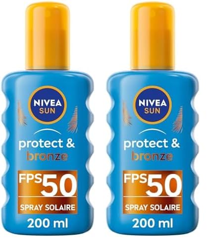 NIVEA SUN Spray solaire Protect & Bronze FPS 50 (1 x 200 ml), crème solaire avec activateur de bronzage, protection solaire à la formule légère et non grasse (Lot de 2)