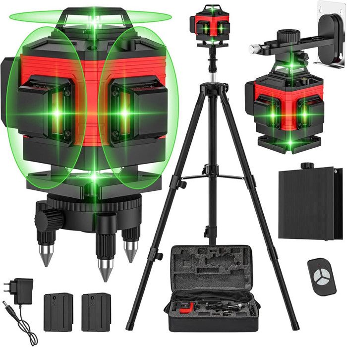 Niveau Laser - 4D 16 Lignes Vertes 360° - Autonivelant ±3° - IP54 - Avec Trépied et Télécommande - Pour Intérieur et Extérieur
