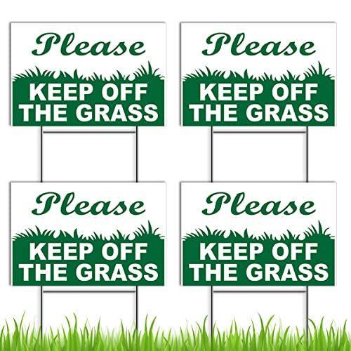 Lot de 4 panneaux « Keep Off the Grass » avec piquet – 15,2 x 22,9 cm Coroplast double face « No Parking on Grass » – Panneaux « Stay Off Grass » pour cour – Ne pas marcher sur l'herbe 1