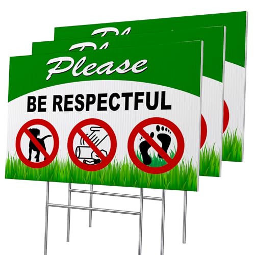 Lot de 3 panneaux « Keep Off Grass » avec piquet – 30,5 x 20,3 cm double face en coroplast « Keep Dogs Off Lawn » – Panneau pour chien « No Pooping and Peeing » - Panneau « No Littering »