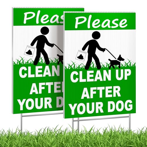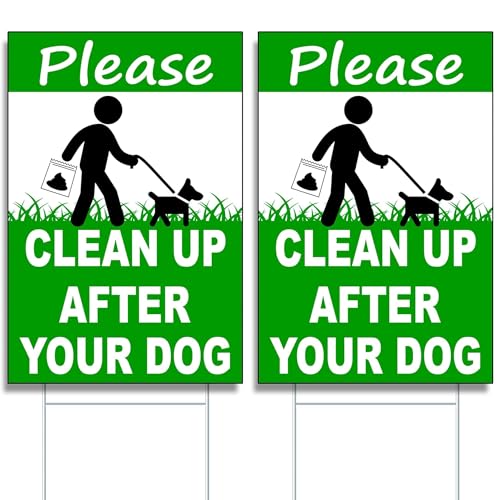 Lot de 2 panneaux « Clean Up After Your Dog » - Double face - 20,3 x 30,5 cm - Panneau « No Dog Poop » pour cour - Panneau « Curb Your Dog » - Panneau « Pick Up After Your Dog » - Panneau « No Dog
