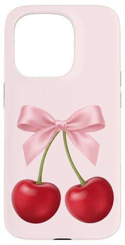 Vintage Cherry Esthétique Noeud Rose Kawaii Fruit Coque pour iPhone 15 Pro